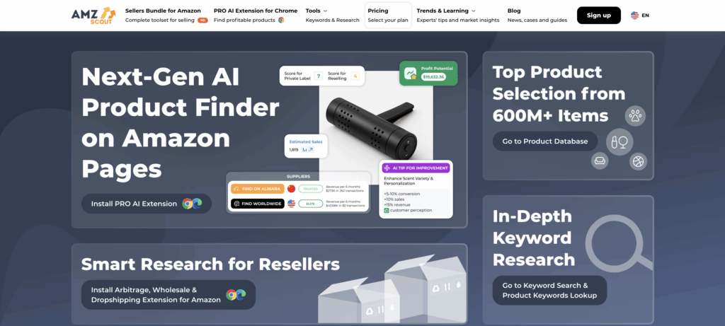 AMZScout is a user-friendly tool that provides valuable insights into Amazon’s keyword landscape. Its keyword research tool helps sellers uncover profitable keywords and optimize their listings for better visibility.